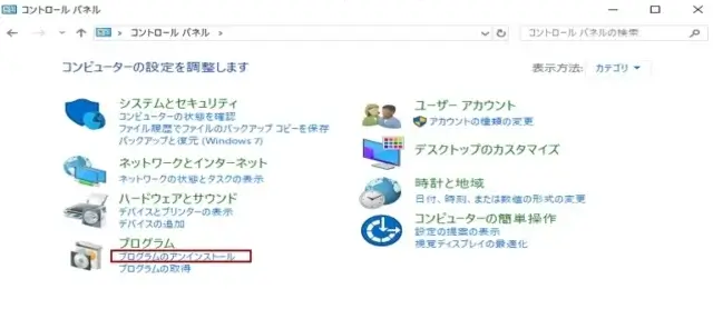 【コントロールパネル→プログラムのアンインストール】の順にクリックすると、プログラムの一覧が表示されます。